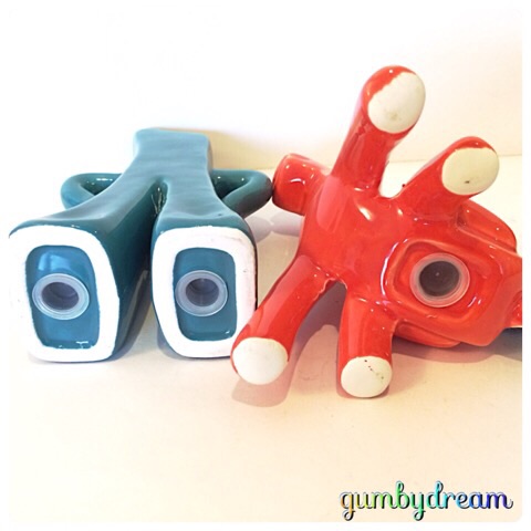 2015/01/30 Category : GUMBY Gumby and Pokey Salt and Pepper Shakers 1997 金曜の夜、秋田からの終電で仙台に向かっているのですが、暇なのでブログでも書いておきましょう。出先からですので東京に置いてきたコレクションからのご紹介。ガンビーさんとポーキーさんのSALT & PEPPER SHAKERSです。まずはガンビーさん。頭頂部に穴が3つ。ここから塩が出てくるわけです。そしてポーキーさん。背中に穴が1つ。ここから胡椒が出てくるんでしょう。ガンビーさんの穴もポーキーさんの穴もご覧の通り小さいので、実用性があるかと言えば微妙なところですね。因みにガンビーさんもポーキーさんも底面には塩・胡椒を入れる穴がちゃんと付いてます。以前にご紹介したガンビーさんのマグ・カップと同じく、1997年のCRAY ART社製。その時の記事はこちらです。Cray Art Gumby &Pokey Ceramic Mug 1997今週のオッさんは山形、青森、秋田と出張続き。三沢の青森屋さんで「すこっぷ三味線」観たり…八戸のみなと食堂でヒラメの漬け丼食べたり…種差海岸で太平洋眺めたり…秋田名物「味噌チャンポン」食べたり…居酒屋で秋田在住の柳葉敏郎さんのサイン眺めたり…別に遊んでるわけじゃありませんよ。お仕事、お仕事。ちょっと忙しい1週間でしたが仙台にちょいと帰った時は妻のお祝い事をシャンパン空けたりして。良い夫ぶりもちゃんと発揮していたりもします。今回の移動中は読書。映画にもなったテッド.Y.フルモトさんの「バンクーバー朝日」なんかを読了してみました。仙台着は23時過ぎの予定。寝過ごしたら東京まで行っちゃいますから頑張って起きてるようにします。 ©2011-2015 GUMBYDREAM Created with flickr badge. http:// PR